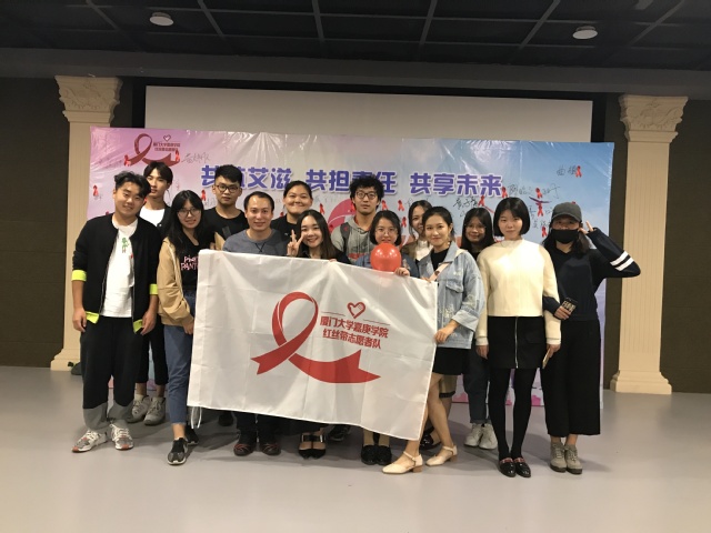 厦门大学嘉庚学院红丝带志愿者队合影留念