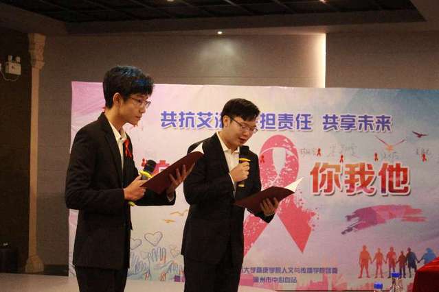 接着郎坤和任冲遥同学带来的《飘扬的红丝带》朗诵,带我们走进了艾滋病人内心的孤独无助,“这灾难到底是谁的错,我诅咒我祈祷,我愤恨我也心寒,我在闲言碎语中度过凄凉的余生,我希望这个世界不再迷乱...... 我坐在黑暗的窗口。”也激发了我们志愿者为消除对艾滋病患者歧视而努力的责任感。