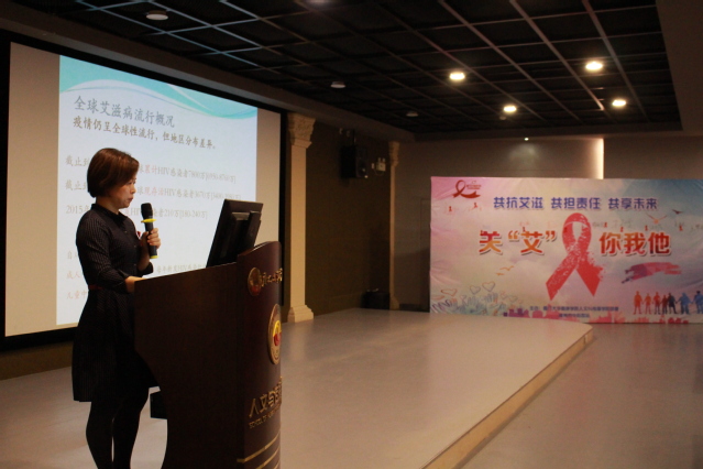 人文与传播学院团委于12月1日中午14:30在主一517小影厅,举办“关艾你我他”防艾讲座暨厦门大学嘉庚学院红丝带志愿者队成立仪式。漳州市中心血站陈美育医生,学工部副部长李三伟老师,团委副书记张媚老师,部长助理郑文珏老师,团委朱郑雯老师,文传院辅导员林延贵老师、吴保光老师、王慧玲老师、余世维老师、唐慎言老师以及红丝带志愿者们出席了本次活动。