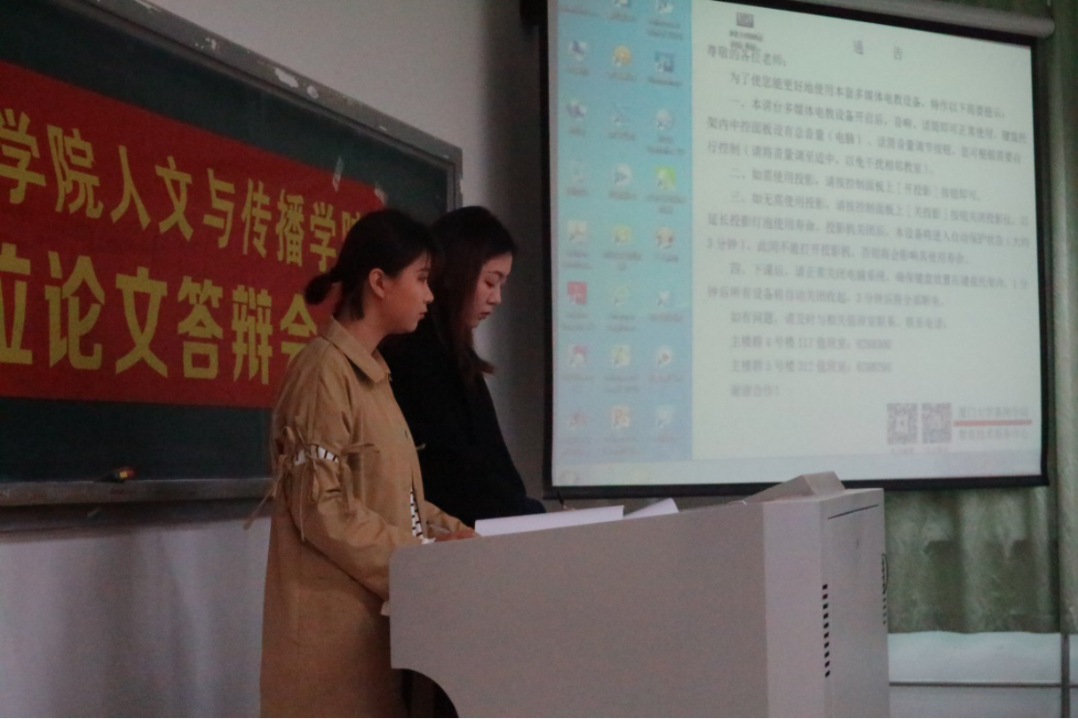 本学年倒数第三个周末阴雨绵绵,主四教学楼却弥漫着热气。1月6日,人文与传播学院毕业论文答辩在主四1-4楼展开。参加答辩的同学有且仅有三分钟时间来论述论文的架构和主旨,然后接受老师的提问。