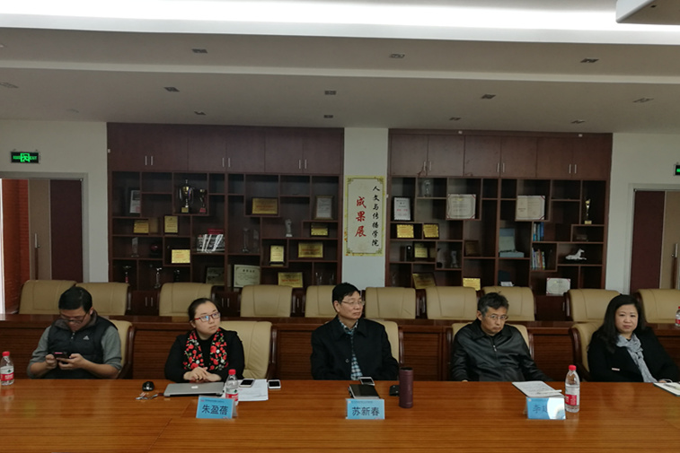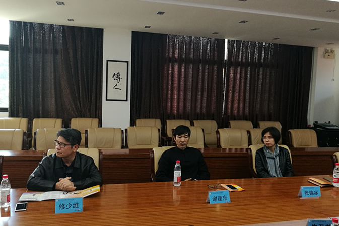随后,我院院长苏新春和部分老师与谢总一行人在508会议室进行了近两个小时的座谈。谢总方面主要介绍了龙人古琴、龙人书院的创办历史和未来发展愿景。我院方面主要介绍了我院的学科建制、专业设置、教学科研工作和实验室建设等情况。谢建东先生听完后,表示说:“我们需要的,你们院正好都建设地非常完善了,我想,以后合作的空间会很大,合作的方式也可以有很多种。”