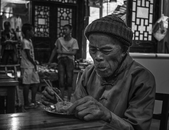 该组作品陈老师2017年创作于福建、湖北等地,记录了农村“空巢老人”的生活状态。