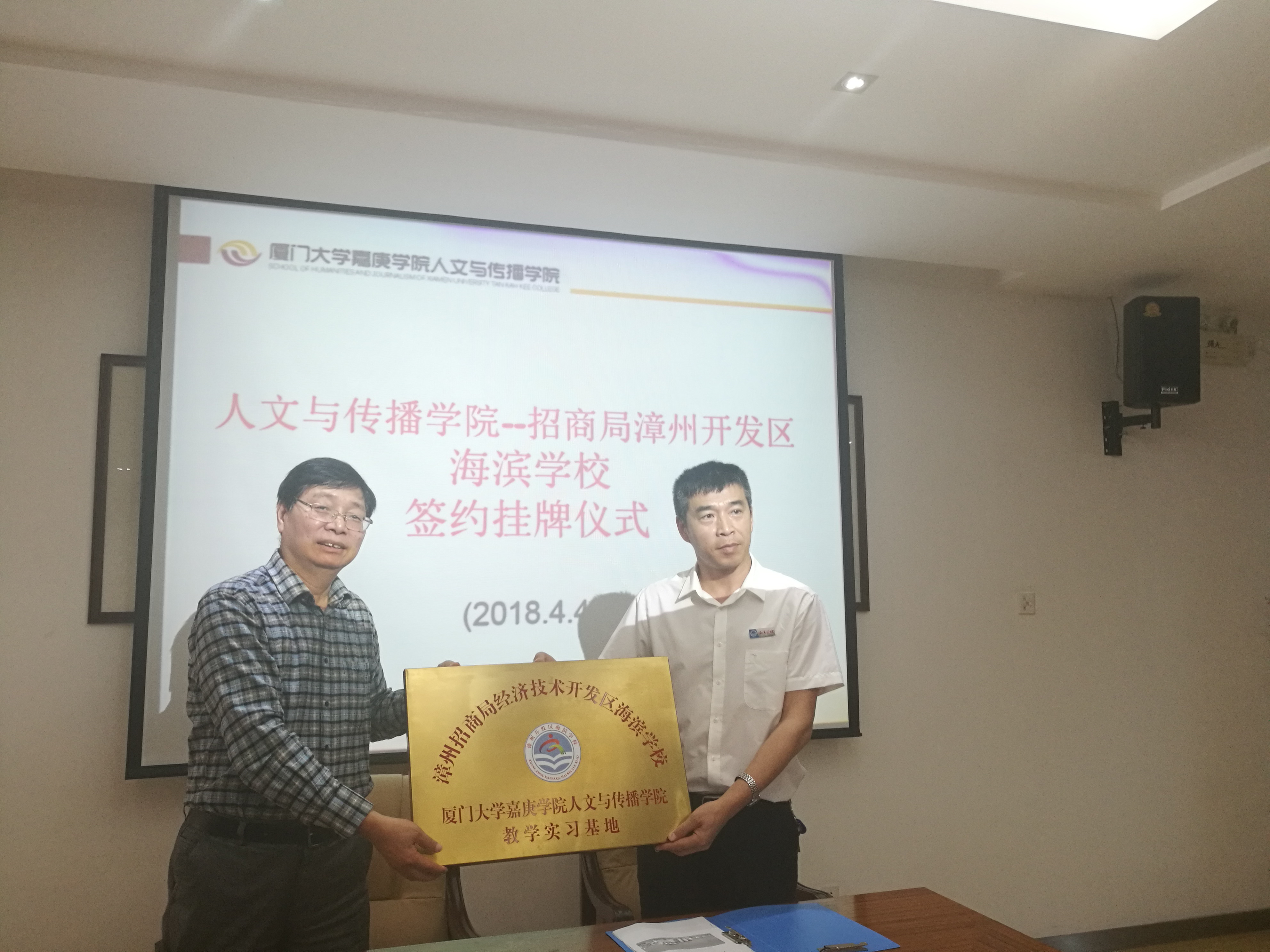 为进一步推动我院与漳州开发区海滨学校的实习合作关系,2018年4月4日上午,海滨学校校长一行来访我院,并在我院主楼群一号楼508会议室举行了签约挂牌仪式。