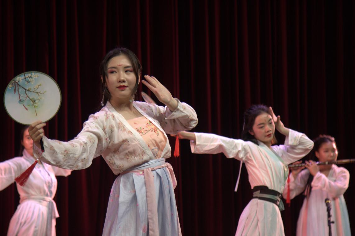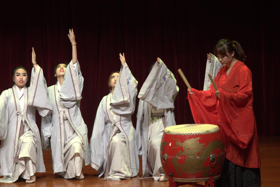 孔子在杏坛之上,弦歌讲学,仁者无忧,胸怀天下。16级中文1班带来的是舞蹈剧《颂贤》,古朴典雅的古装搭配柔美的舞姿,庄重深沉的鼓声遇上清脆爽朗的击竹声,变换多样的阵型和刚柔兼济的表现,获得全场阵阵掌声。