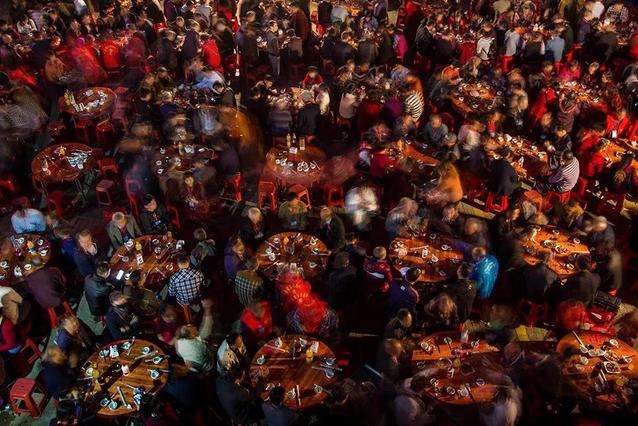 王占北:作品采用虚实结合的手法,很好的表现了“百桌宴”这一民俗盛况。特别是封闭式构图和暖色调的运用,使主题得到很好的烘托。