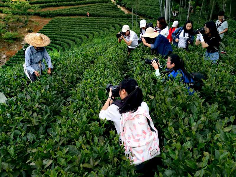 同学门拍摄念山村的采茶现场 (黄杰敏 摄)