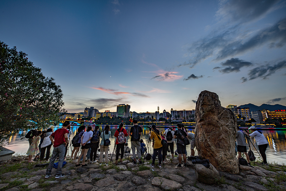 7月14日凌晨5点,师生驱车前往赴顺昌县的合掌岩上拍摄日出、万佛窟,下午在元坑古镇的华阳古廊桥上,听当地八旬老人余钟纯介绍秀水村的历史故事,晚上师生一行在古镇的文昌桥周围拍摄星空。