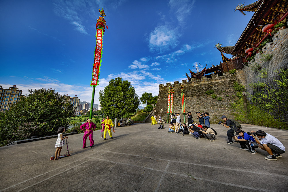 南平建瓯是此次摄影实践创作的第五站。7月13日上午,在当地摄影家的带领下,我校师生分别以建瓯古城墙、福茅酒业、和福建省级非物资文化遗产“挑幡”民俗为题材进行创作,感受极具地方特色的闽北非遗文化。