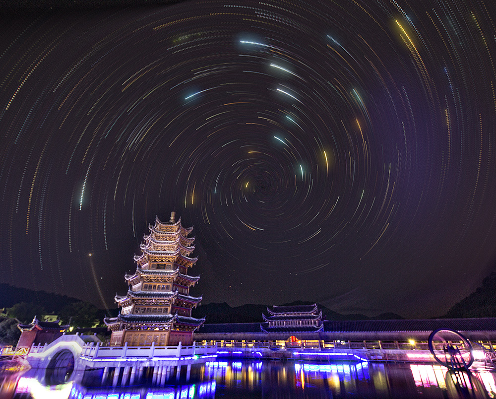 元坑古镇的文昌阁星轨 (陈燕 摄)