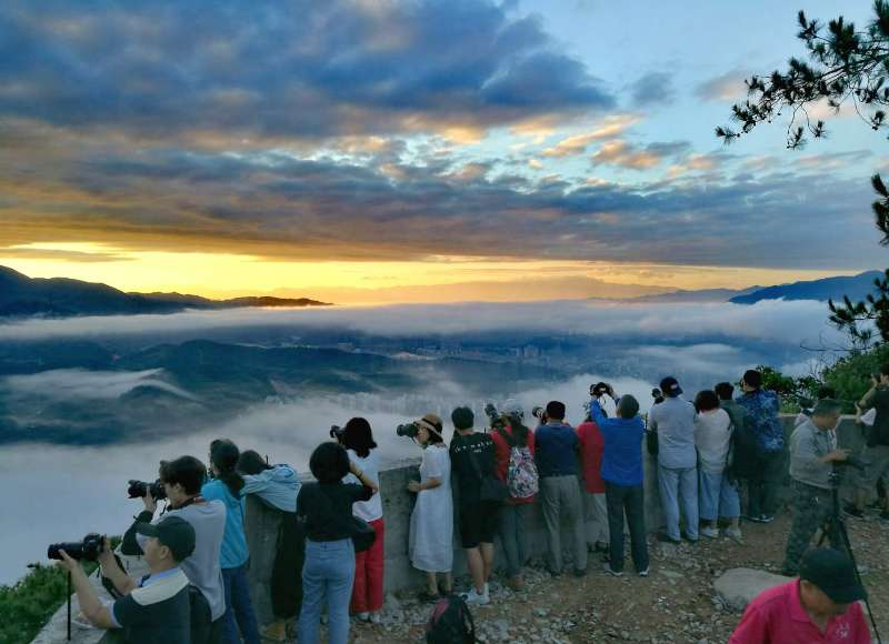 师生在合掌岩拍摄日出 (黄杰敏 摄)