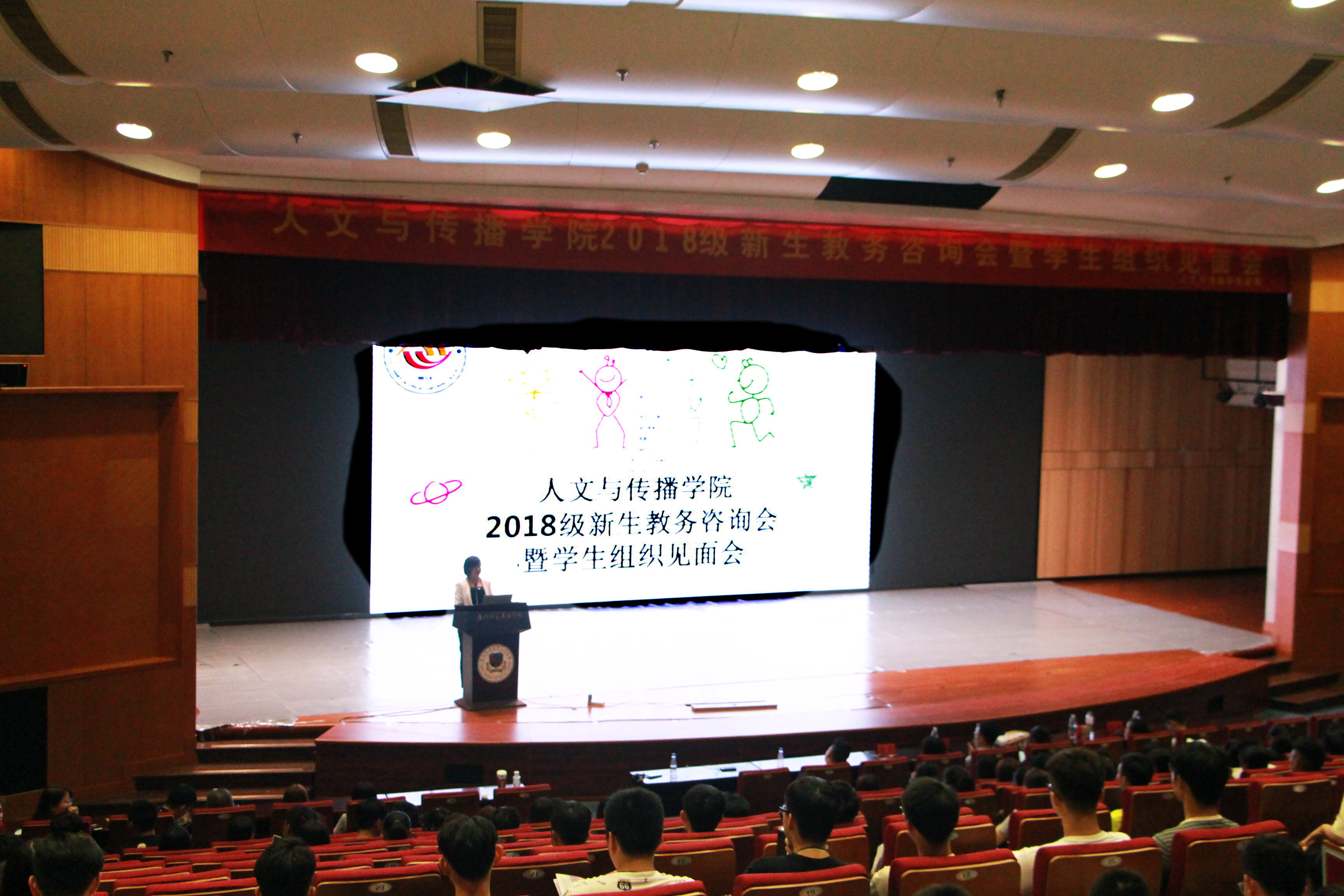 8月31日上午,我院2018级新生教务咨询会暨学生组织宣讲会在主三大报告厅举行。咨询会由党总支副书记黄丽明老师主持,各专业辅导员均到场与文传新人见面,教务秘书杨杨老师为新生介绍学校教学管理的相关规定,文传院党建指导老师吴保光老师为新生做入党启蒙教育,学生组织秘书处秘书长王慧玲老师介绍了学生组织基本架构。最后,我院学生会、团委、宣传中心学生代表依次上台为新生们做团学组织的介绍。