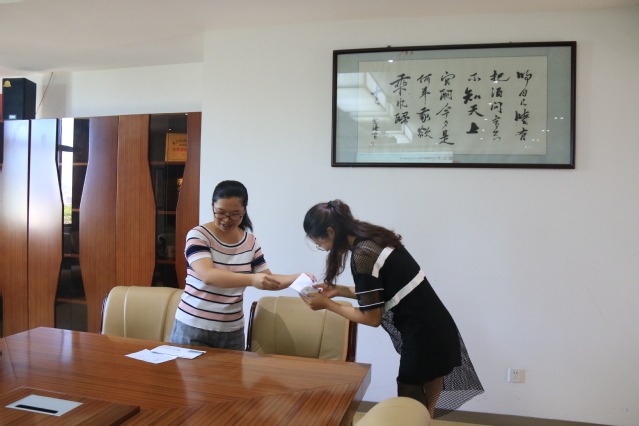 最后,科研工作处老师陈茹娇向四位新生发放研究生津贴,并祝新生们学习顺利学业有成。