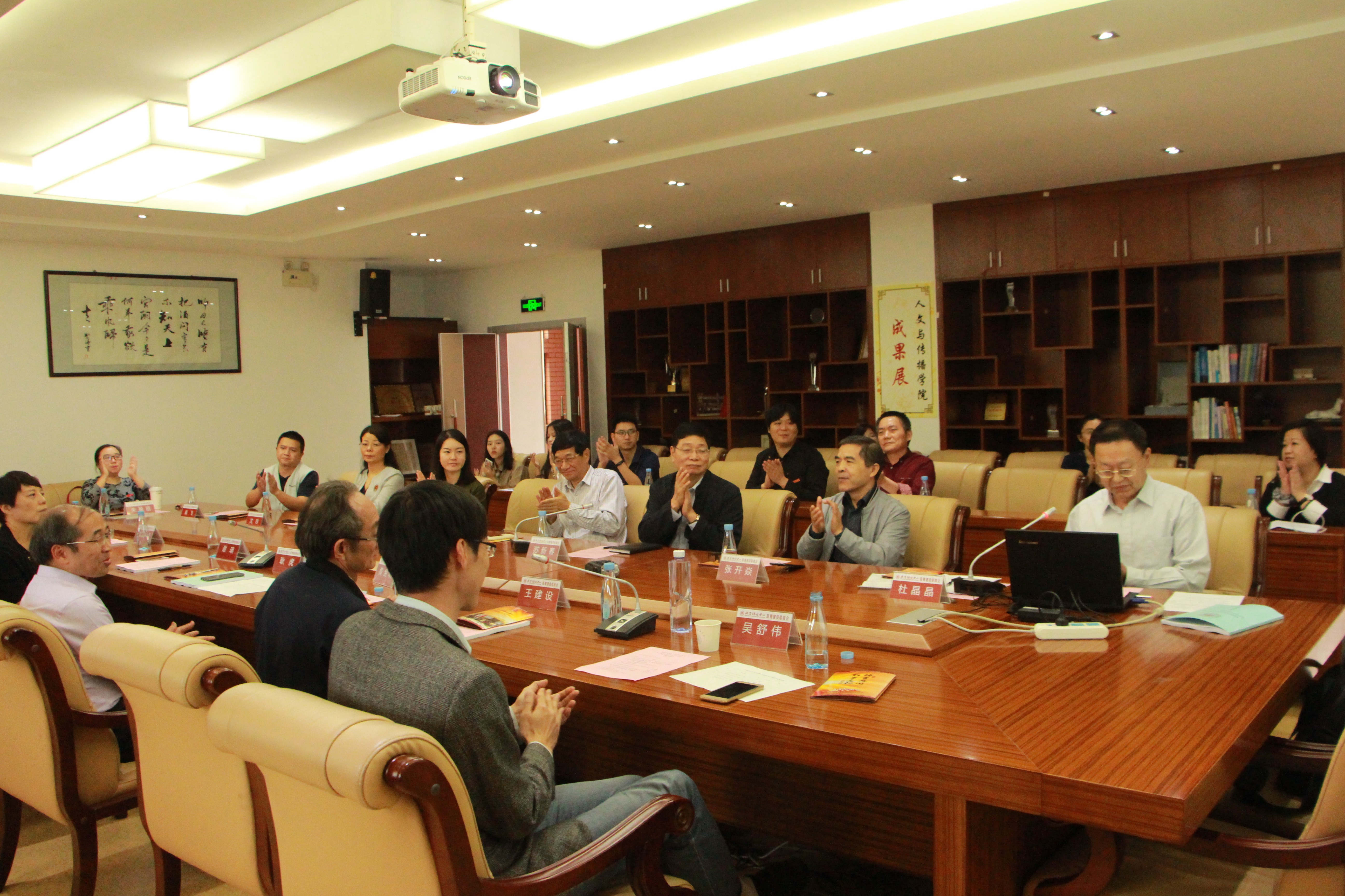 询问环节后,经过专家组现场查验建设成果材料和评议,评审专家组组长耿虎教授宣读了验收意见:该中心超额完成了计划任务书的各项目标任务,同意通过验收。