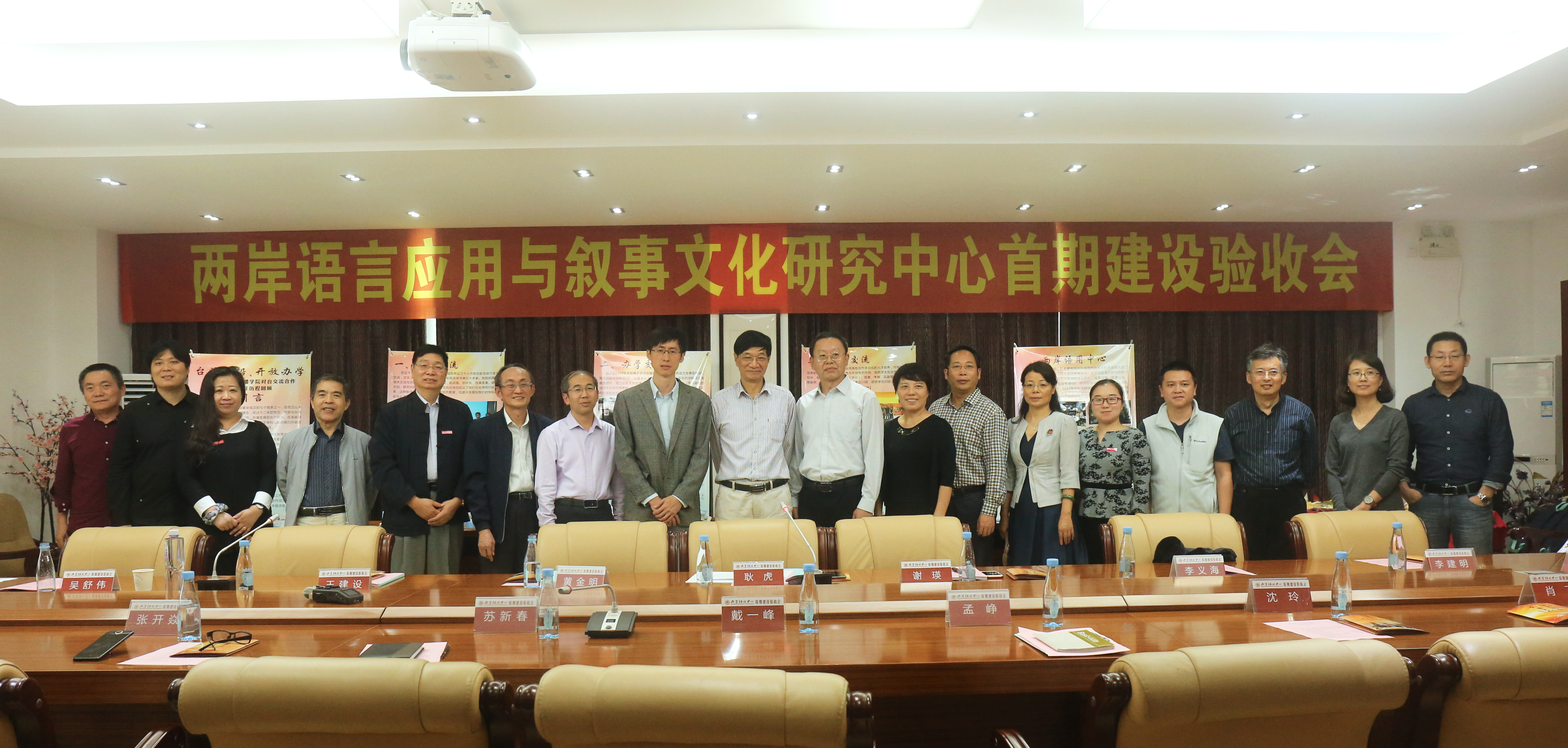 最后,苏新春教授表示感谢,并指出取得这样的成就离不开省厅、学校、同行、社会各界的支持和两岸语用中心成员的努力,任重道远,继续努力。戴副校长对省厅领导、评审专家组表示感谢。评审专家组组长耿虎教授宣布会议圆满结束,两岸语用中心成员与省厅领导、专家合影留念。