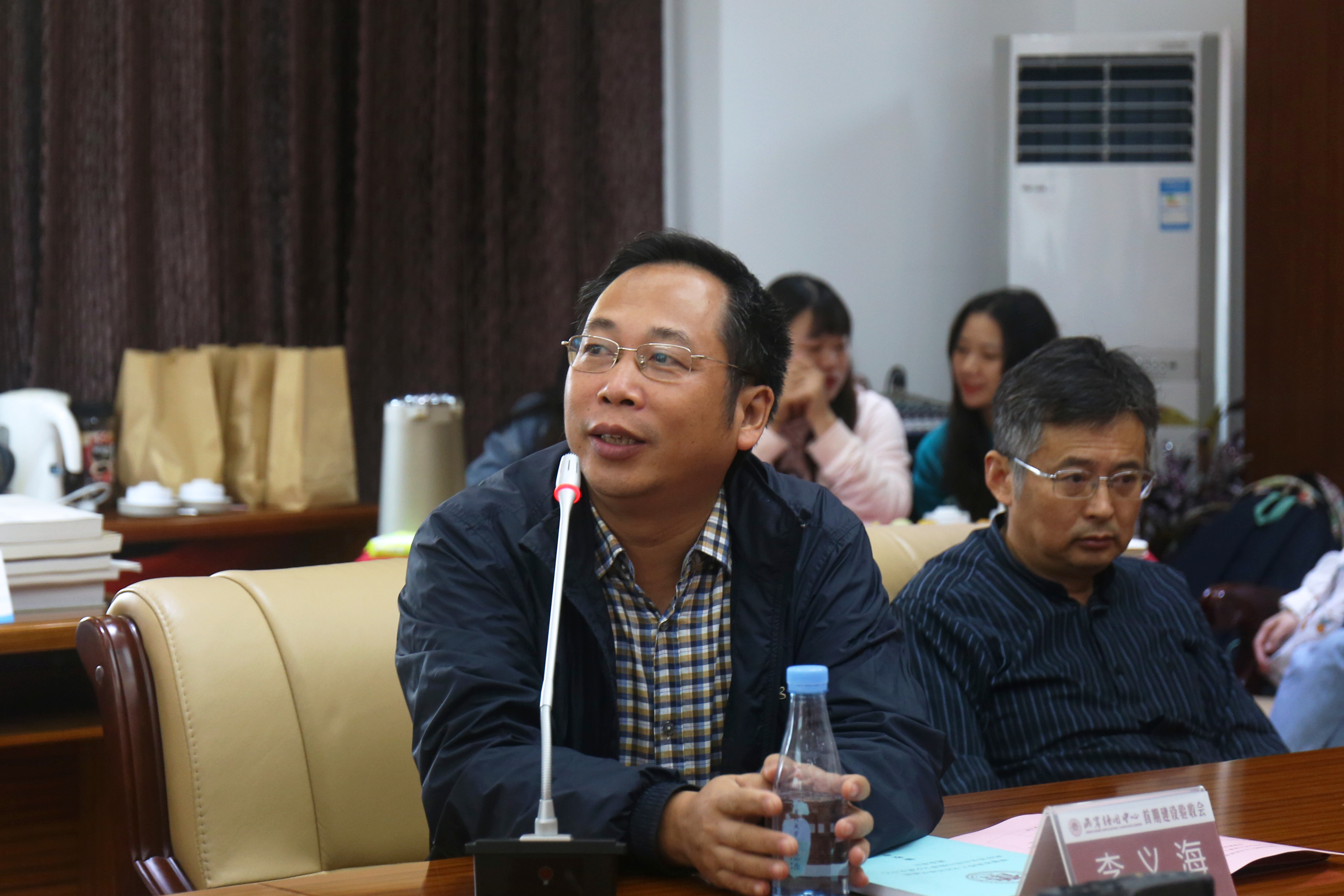戴一峰副校长致欢迎辞,对省厅领导、各位评审专家表示欢迎,在介绍中他特别指出了两岸语用中心在我校的特别之处——“‘两岸语用中心’是嘉庚学院第一个也是目前为止唯一一个省高校人文社科基地。”