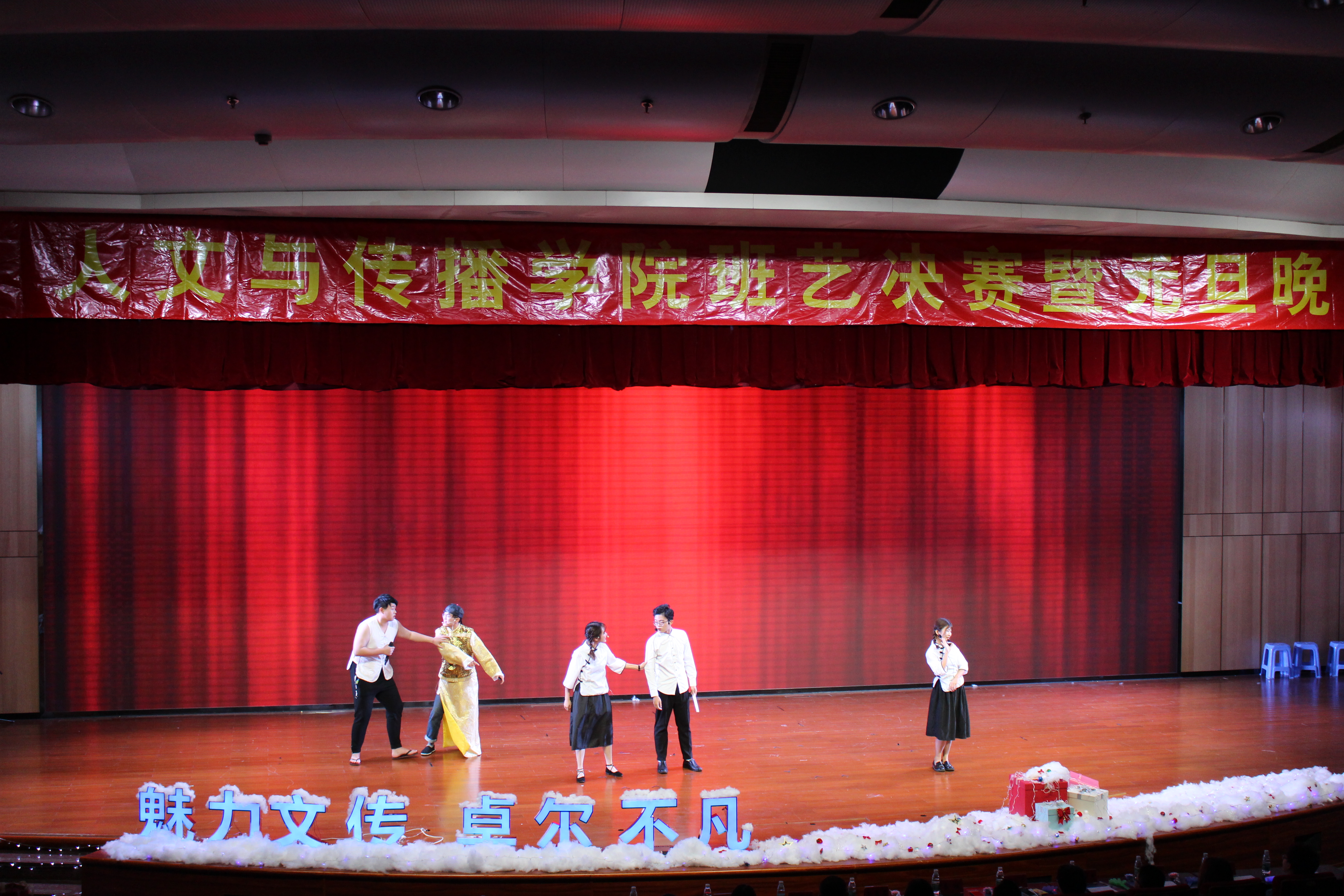 2018年12月28日,人文与传播学院广播电视学、广告学、新闻学、文化产业管理、汉语言文学五个专业联手在主三楼大报告厅给观众奉上一场跨年晚会。