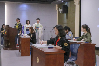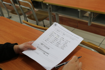 “决赛以十六进八、八进四、四进三、冠亚季军争夺战的赛制进行,两两对决的形式来角逐本次大赛的优胜者。”身着汉服的主持人对赛制进行简短而详细的说明过后,本次比赛的听写场决赛正式开始。