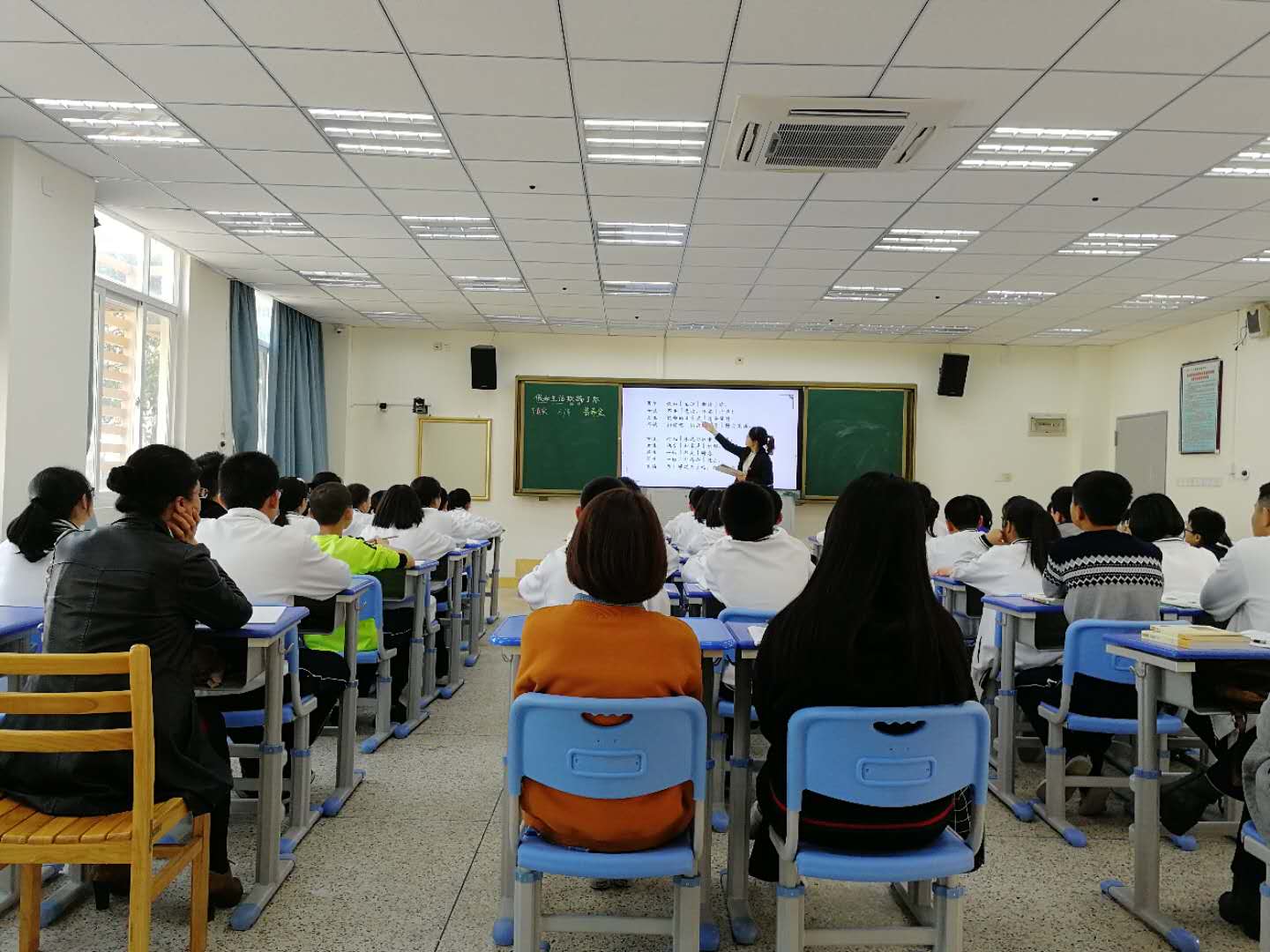 在厦大附中实习期间内,每一名实习生都根据附中语文组长的安排和指导下,对实习所在班级的同学们进行了公开授课。在准备期间内,实习生们都能尽心准备所需材料,不断修改教案和授课方式,与科任教师和语文组长进行交流,尽力做好课前准备,附中教师也给予了实习生们很大帮助。在授课期间,实习生们也能根据学生的反应做出良好的教学调整和控场反应。七年级八班实习教师郑莹斌同学,也在实习期间进行了《假如生活欺骗了你》的全校级公开课,获得了学校老师和同学们的一致好评。