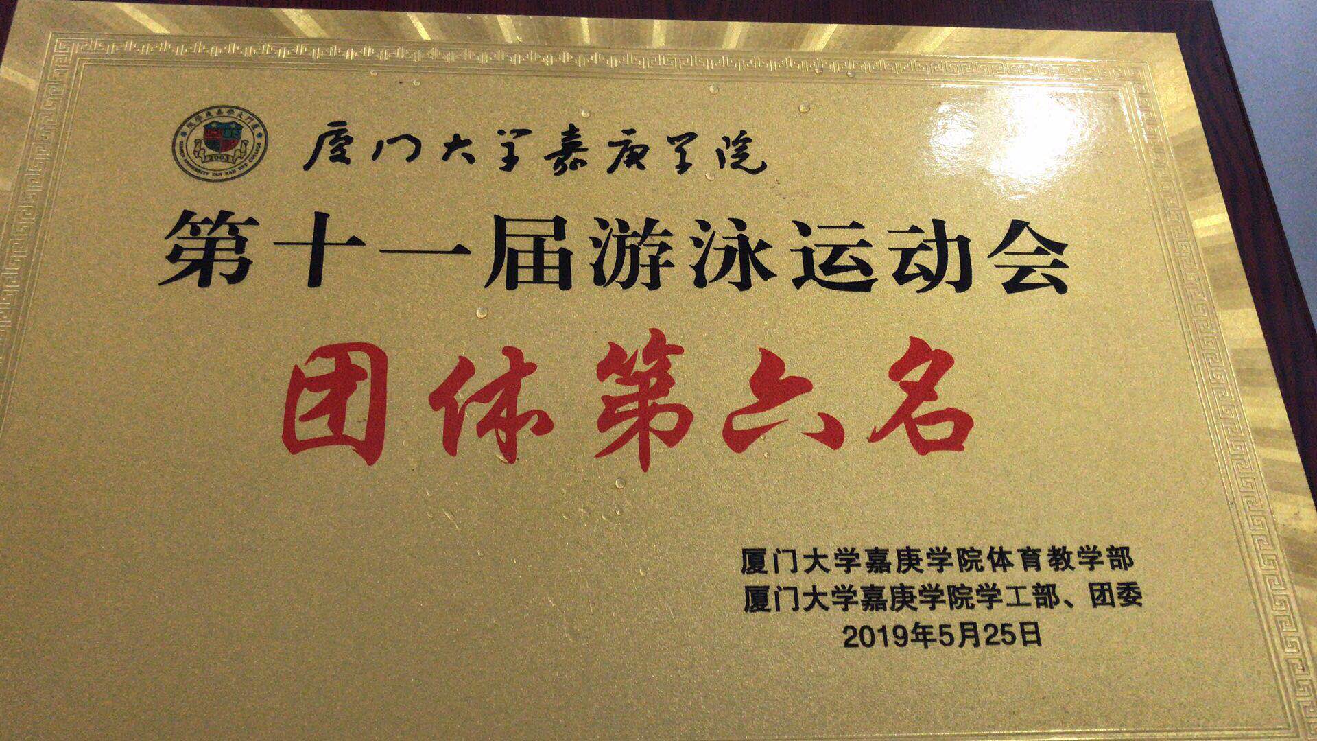 2019年5月25日,由厦门大学嘉庚学院体育教学部与厦门大学嘉庚学院学工部,团委联合举办的厦门大学嘉庚学院第十一届游泳运动会在北区游泳馆举行,一共有来自不同院系的11支队伍参与比赛。
