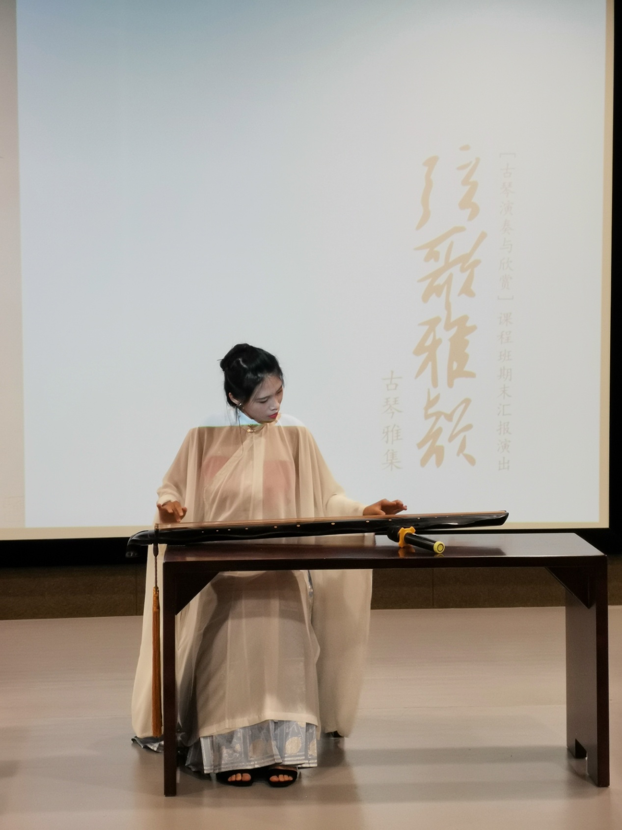 6月24日,主题为“弦歌雅韵、古琴雅集”的古琴弹奏与欣赏课程班期末汇报演出在主楼群1号楼517电影厅举行。