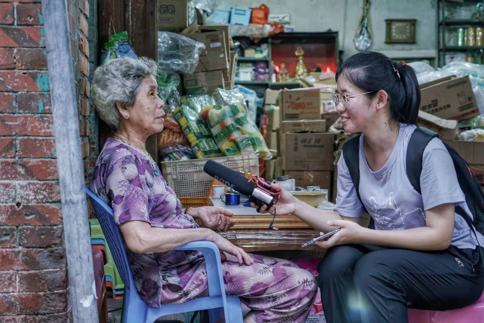 7月8日,人文与传播学院“芗音袅袅”暑期实践队在漳州走街串巷,发放调查问卷,向普通市民进行街头采访,调查了解市民对芗剧的了解、兴趣及对芗剧传承的看法。团队在炎热天气下,与市民交流,劝说市民同意接受出镜采访,扛着机器走访街头巷尾。