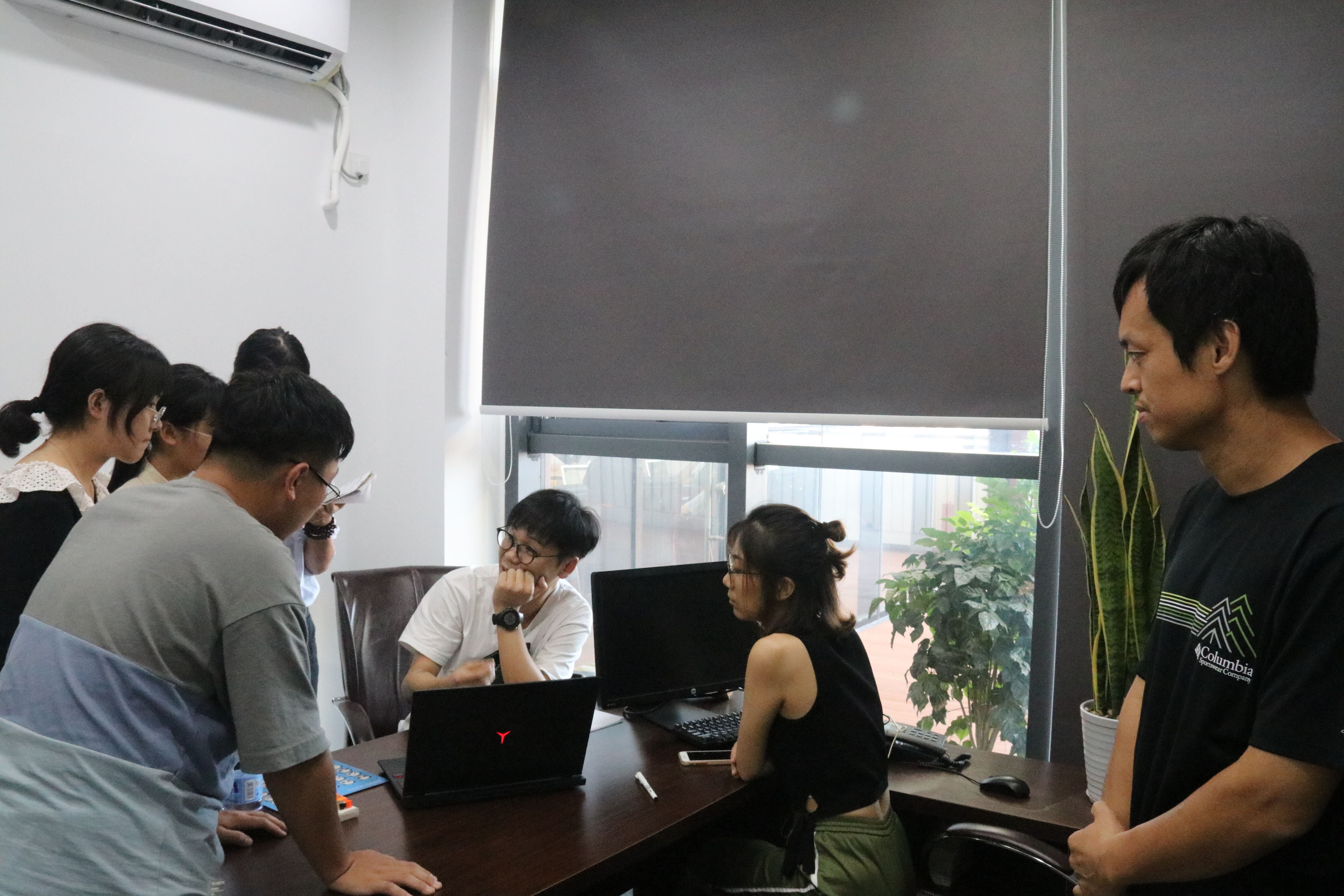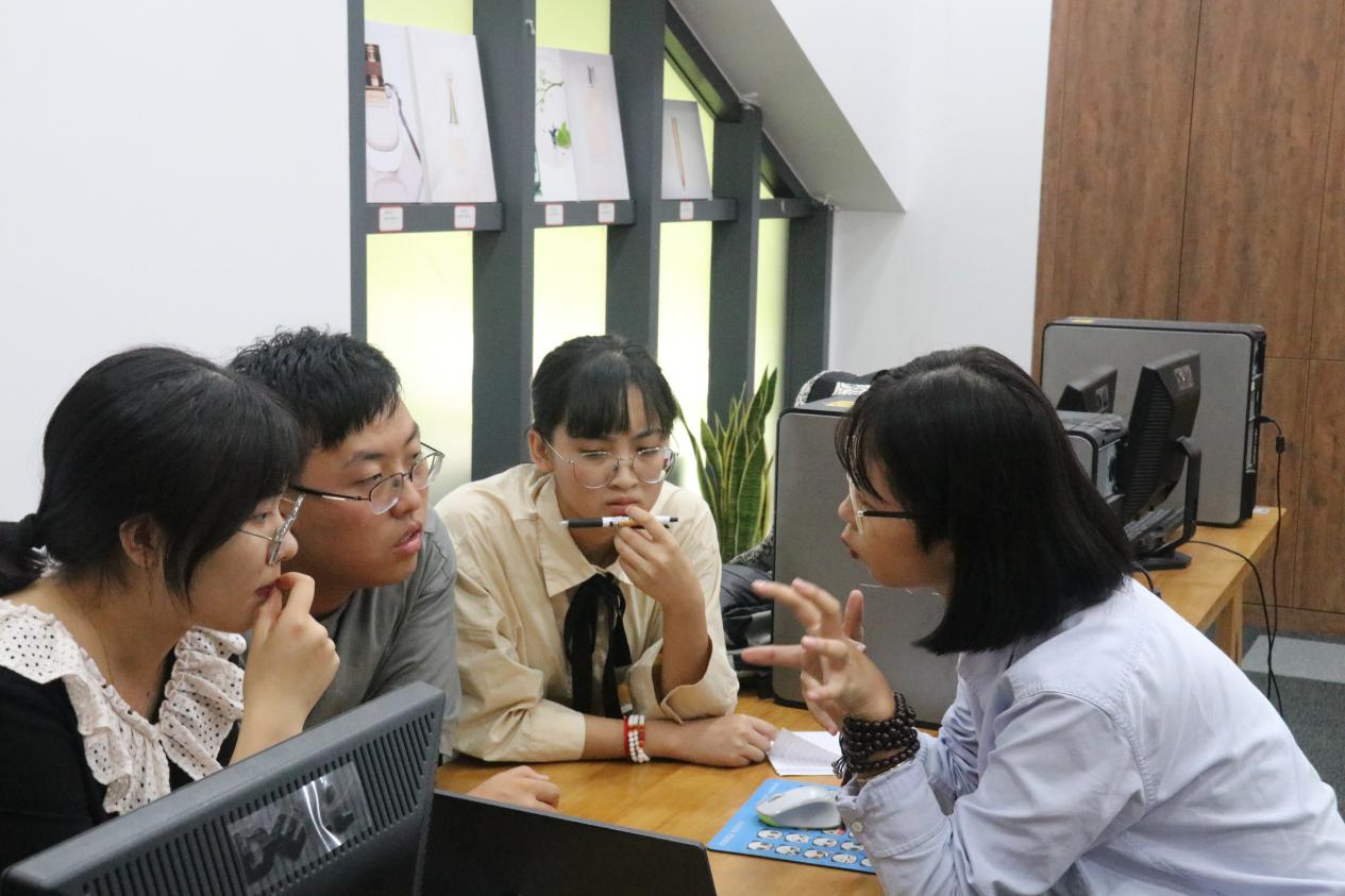 午休时段,同学们依然在火热进行着头脑风暴,并与导师们共同探讨脑洞大开的创意设计。两位创意导师分别带领两个班的同学,在7日下午对参与工作坊的同学们进行一对一的指导,根据专业的评审标准,从概念的提出、推敲与方案的设计进行反复打磨,最终所有小组都完成了至少一个完整的方案,进行了班内第一轮的PK,其中5个小组进入到了最后的提案比赛环节。