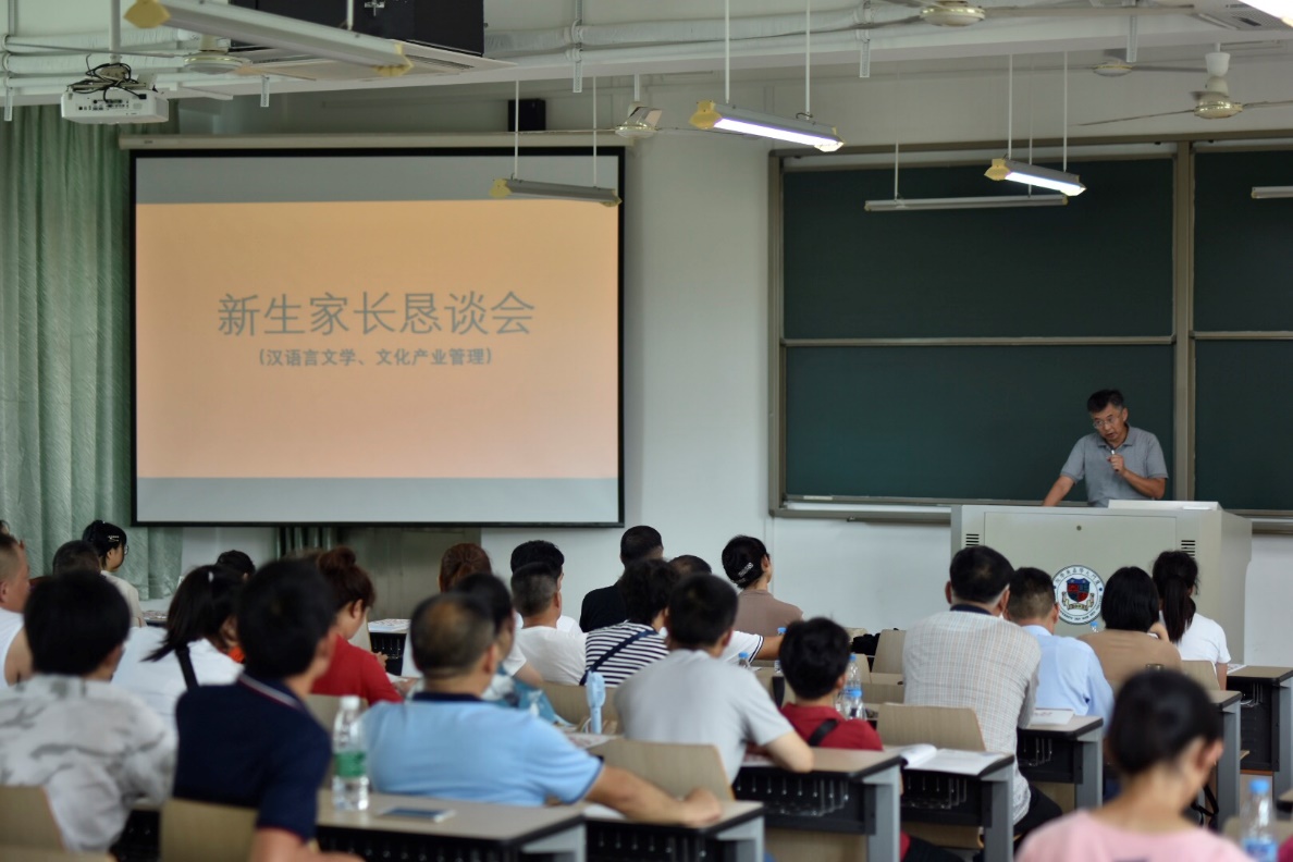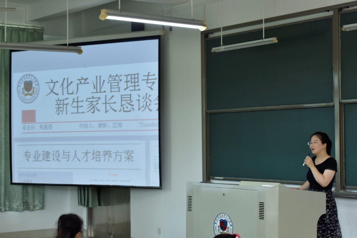 在办公室主任孙海岛老师的主持后,各位专任老师、人文与传播学院团委书记王慧玲老师及辅导员唐慎言老师出席本次家长恳谈会。汉语言文学专业主任李建明老师从中文专业师资、课程设置、毕业生就业方向、毕业生考研情况等方面介绍了我院汉语言文学专业的情况。文化产业管理专任教师江榕从文管专业建设、师资构成、实习基地、毕业生就业等方面对文化产业管理进行综合介绍。