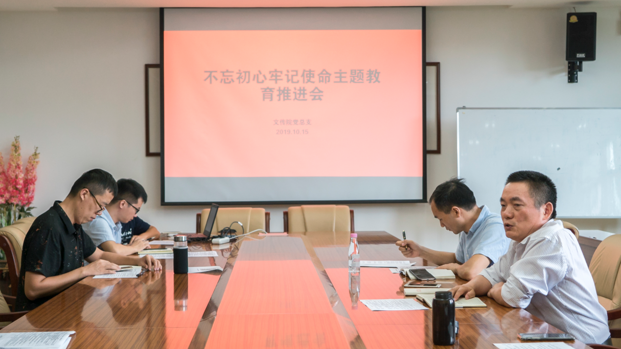 10月15日上午,人文与传播学院党总支在主一508卓尔厅召开“不忘初心、牢记使命”主题教育推进会,深入学习贯彻习近平总书记关于“不忘初心、牢记使命”主题教育重要讲话和重要指示批示精神,全面落实校党委“不忘初心、牢记使命”主题教育的工作部署,总结回顾了前一阶段主题教育工作,并对下一阶段工作做了安排。