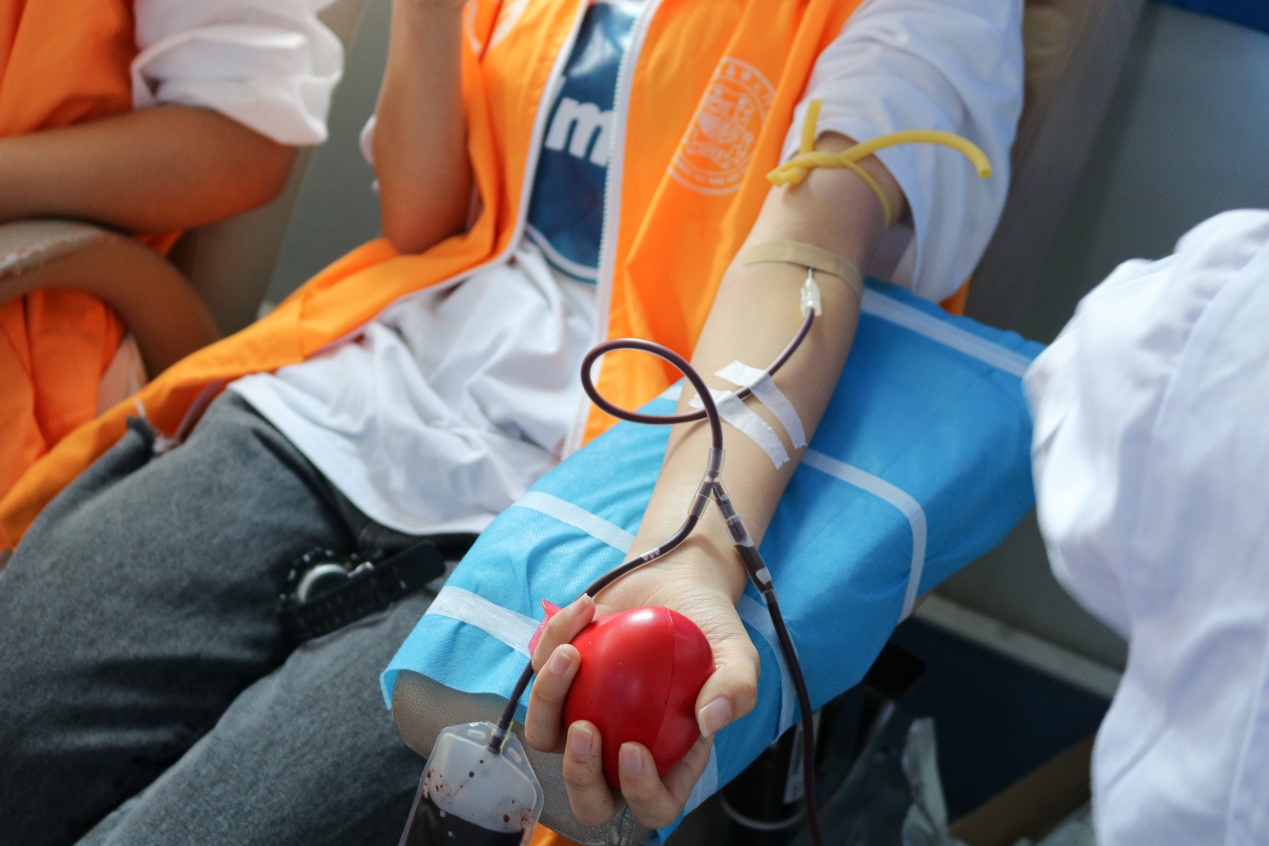 参加本次献血活动的志愿者们也是一道亮丽的风景线,他们的脸上洋溢着快乐的笑容,热心地为大家服务。不论是献血者还是志愿者,他们都在用自己的实际行动,传递着爱与感动。在同学们献血过后,志愿者们及时上前搀扶,递上一杯温暖的红糖水,在秋日中送去一份温情。“他们奉献于社会,我们服务于他们。”一位志愿者如是说,“有些同学在献血后会出现眩晕等症状,我们会配合医生对其做出适当的应急措施。”团委还为献血的同学准备了小礼物。