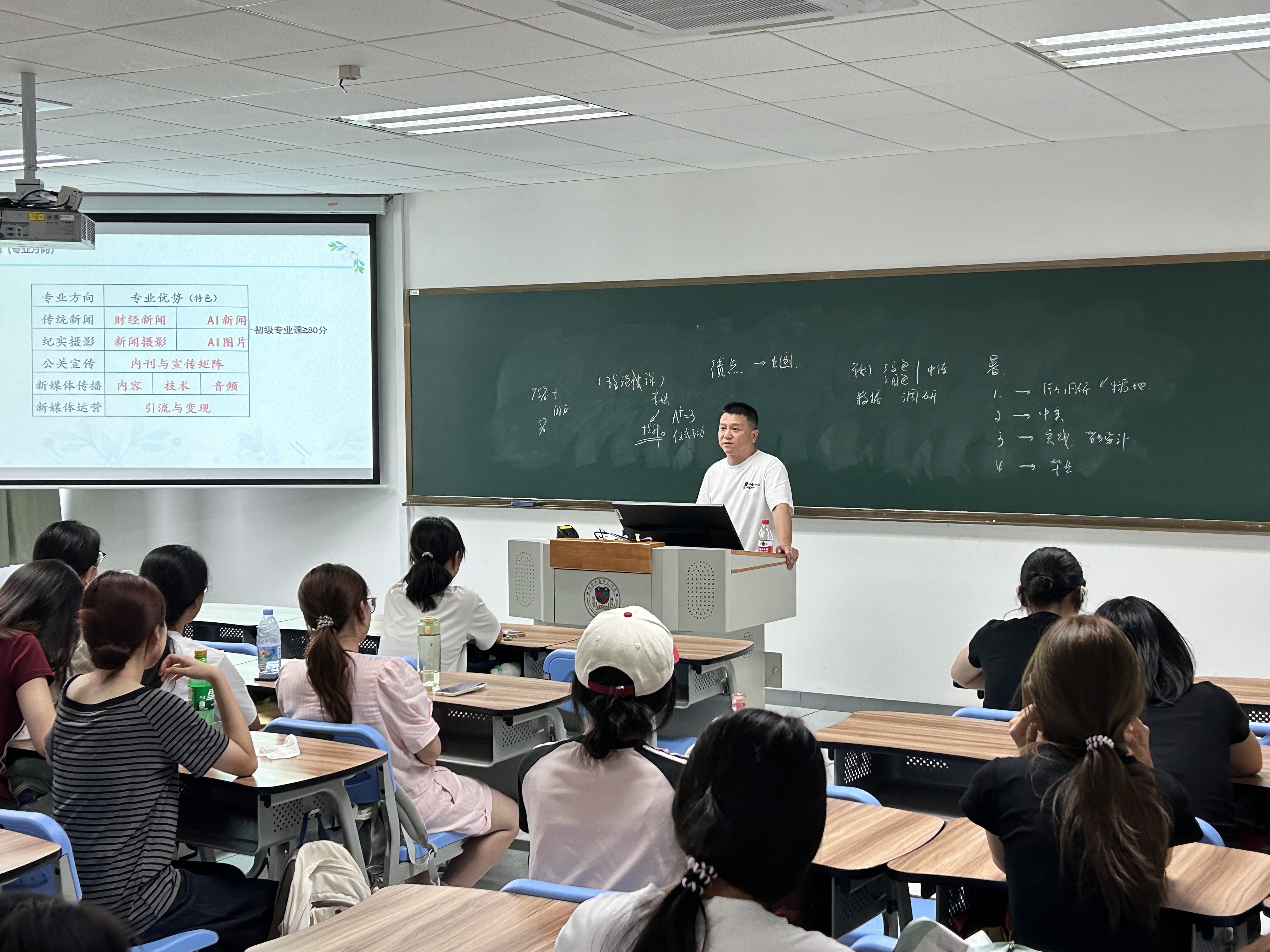 9月24日,我院新闻学专业为2025级新生举行了“人才培养方案解读”专题讲座,专业主任肖飞老师在讲座中不仅详细解读了该专业以“智能新闻”为特色的新一版培养方案,还解答了新生们对于专业学习和学科规划的相关疑问。