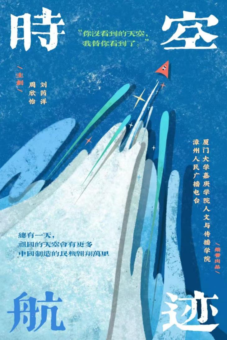 此次《时空航迹》的主创团队成员——人文与传播学院2025届的校友周欣怡与刘芮洋同学,在创作过程中充分展现了嘉庚学子扎实的专业素养与饱满的创作热情。周欣怡同学表示,《时空航迹》讲述的是一代代航空人的拼搏和传承精神,两代飞行员虽隔着六十多年的光阴,却因共同的理想和使命而产生共鸣。广播剧作为纯粹的声音艺术,让我们拥有了无限的想象空间,它可以增强我的感知力、观察力、想象力和表达能力,这一切都让我在创作中感到幸福与满足。我们希望通过人物的对白,通过声场的搭建,让听众“听见”中国航空的过去、现在与未来,“听见”那些默默奉献的航空人,“听见”梦想与牺牲背后的温度,也“听见”我和搭档对笔下角色的珍视,对广播剧创作的喜爱。