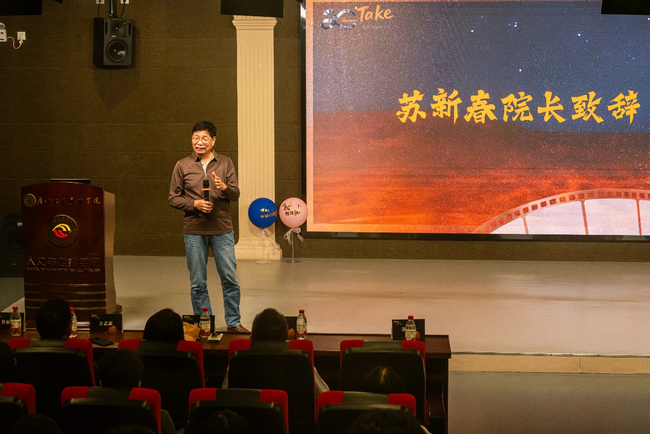 廿载耕耘,桃李千枝传薪火;初心不忘,媒界新程写担当。人文与传播学院院长苏新春在庆典上深情回顾专业育人征程,他表示,广播电视学专业已为社会输送逾千名优秀人才,依托顶尖的省级示范实验室与丰硕的教学成果,专业正在高质量发展道路上阔步前行,同时寄语学子继往开来、再创辉煌。
