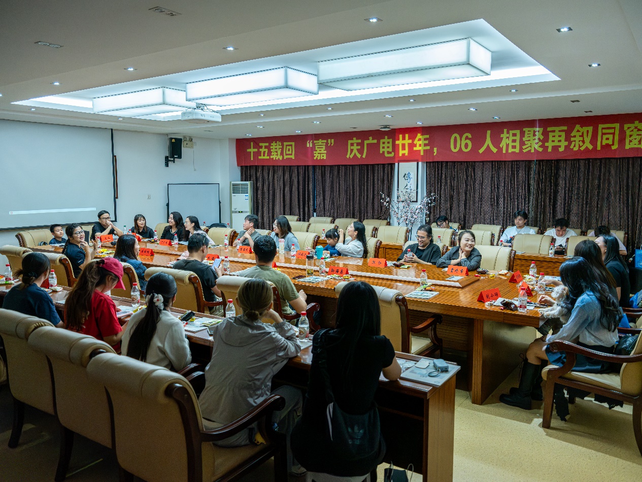 庆祝活动结束后,30 余名校友齐聚主1#508 教室参加返校校友座谈交流会。此次二十周年庆恰逢 2006 级广电专业校友毕业十五周年,13 位 06 级同窗相约集体返校,座谈会现场特别为他们送上毕业 15 周年祝贺,并播放专属纪念视频,温情瞬间打动全场。