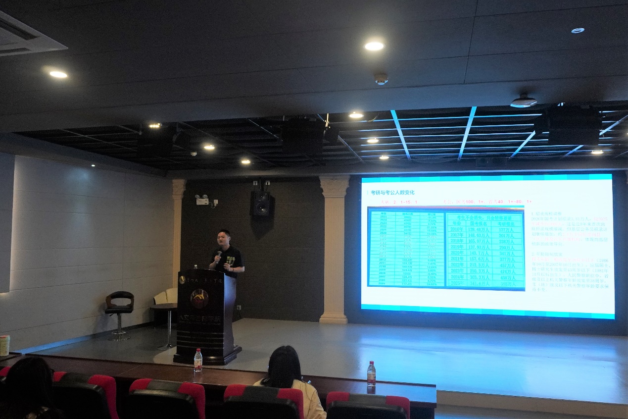 本次讲座紧密围绕我院全专业考研需求,特邀资深考研指导专家张墨清老师担任主讲,张老师以“精准备考,高效冲刺”为核心,从择校规划、初试备考策略、核心考点梳理、考研国家线变化趋势等关键维度展开深入分享,为同学们破解备考困惑,搭建高校交流平台。