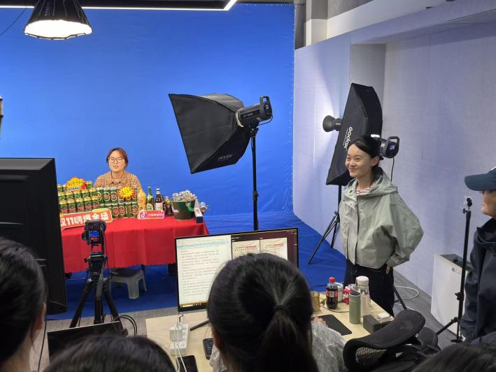 日晟星罗事业部品牌服务三部运营经理王萌,则带领同学们走进真实运营中的直播间,让大家分组体验主播角色,在专业直播设备与真实直播场景中,学习产品讲解话术、互动技巧与临场应变方法,亲身感受直播经济的鲜活脉搏与运营逻辑。