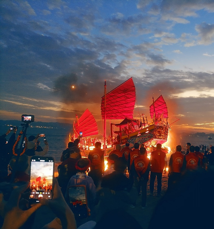 12月14日,新闻学专业三十余名同学在易欣书记与梁逸晟老师的带领下,前往厦门沙坡尾,开展以闽南民俗“送王船”为主题的新闻摄影实践活动。光影之间,不仅定格了五彩王船的精致、仪仗阵头的盛大,更捕捉到信众眸中的虔诚与薪火相传的动人瞬间。随着王船在烈焰中化作青烟与灰烬,象征灾厄祛除、福泽留驻,我们不禁感叹,此次摄影实践不仅是一次影像记录,更是一次文化深描。它让古老民俗通过影像“活”了起来,在快门与潮声的和鸣中,见证着敬畏自然、感恩海洋的精神血脉,也见证了民俗文化在这座现代都市中生生不息地流淌。