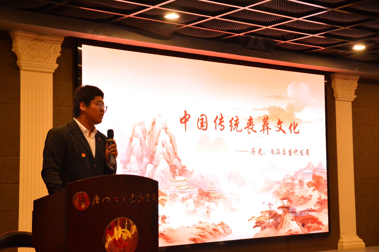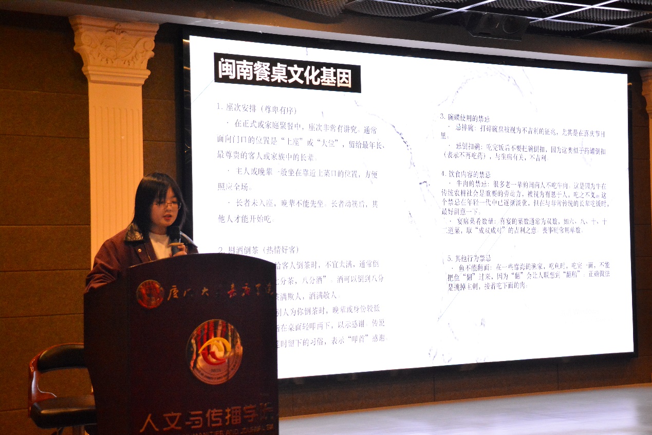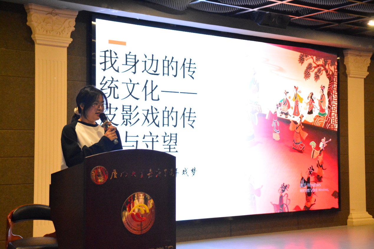 王萍主任的致辞为展示会拉开序幕。王萍主任认为,中国传统文化的汇报展,既是课程学习成果的总结,更是嘉庚精神的体现。传统文化课程班重视实践课程,也重视课程实践。而后,她介绍道,本次汇报的涉及的习俗文化与精神文化以“接地气”的方式呈现,结合了福建的地域文化,能将调查研究与课程学习紧密结合,更具实践价值。