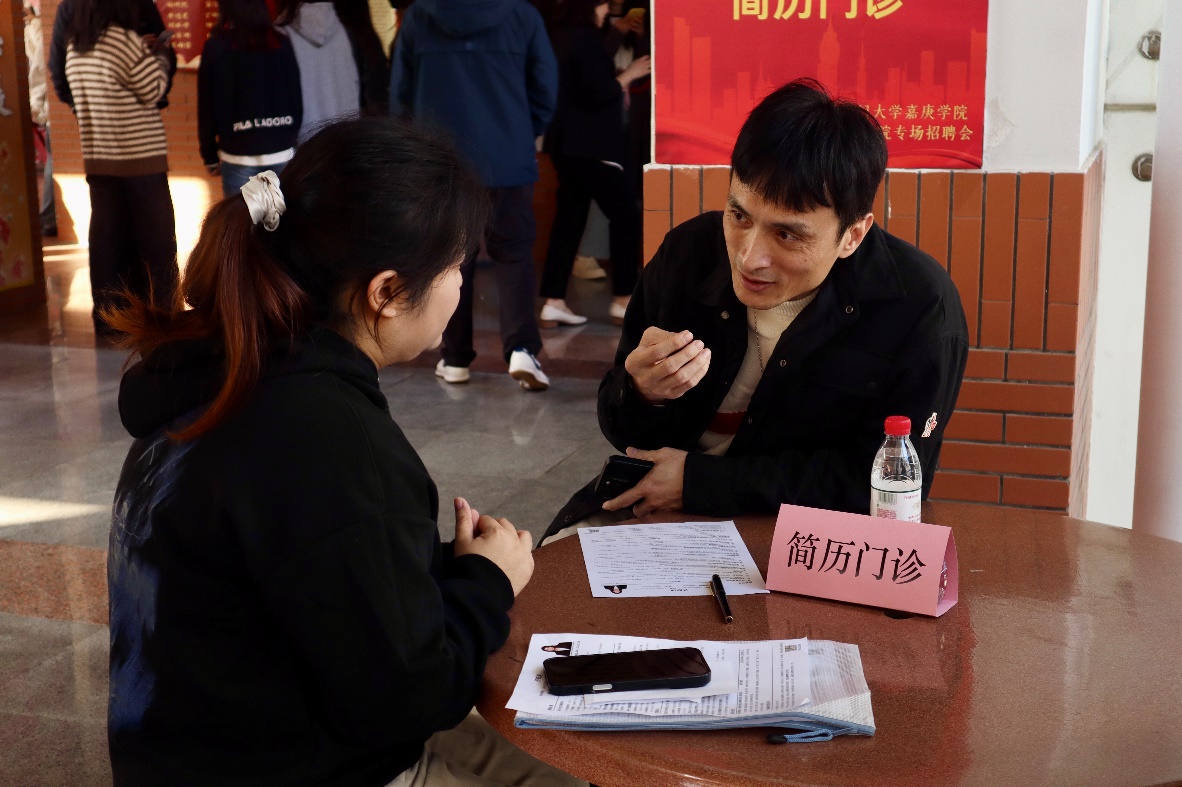 现场还设立了简历门诊,观途(厦门)广告有限公司总经理王泽华,我校实习与就业服务中心陈雅雪老师作为专业导师,为在场的同学提供简历“诊断”,在点出同学们简历存在问题的同时,还对同学们应当如何准备简历提供了以下几点建议:首先,简历要突出个人亮点,并且这个亮点要符合应聘岗位;其次,在线下自我介绍时要补充简历无法体现的个人优势;最后,要尽量避免简历模板化、同质化。