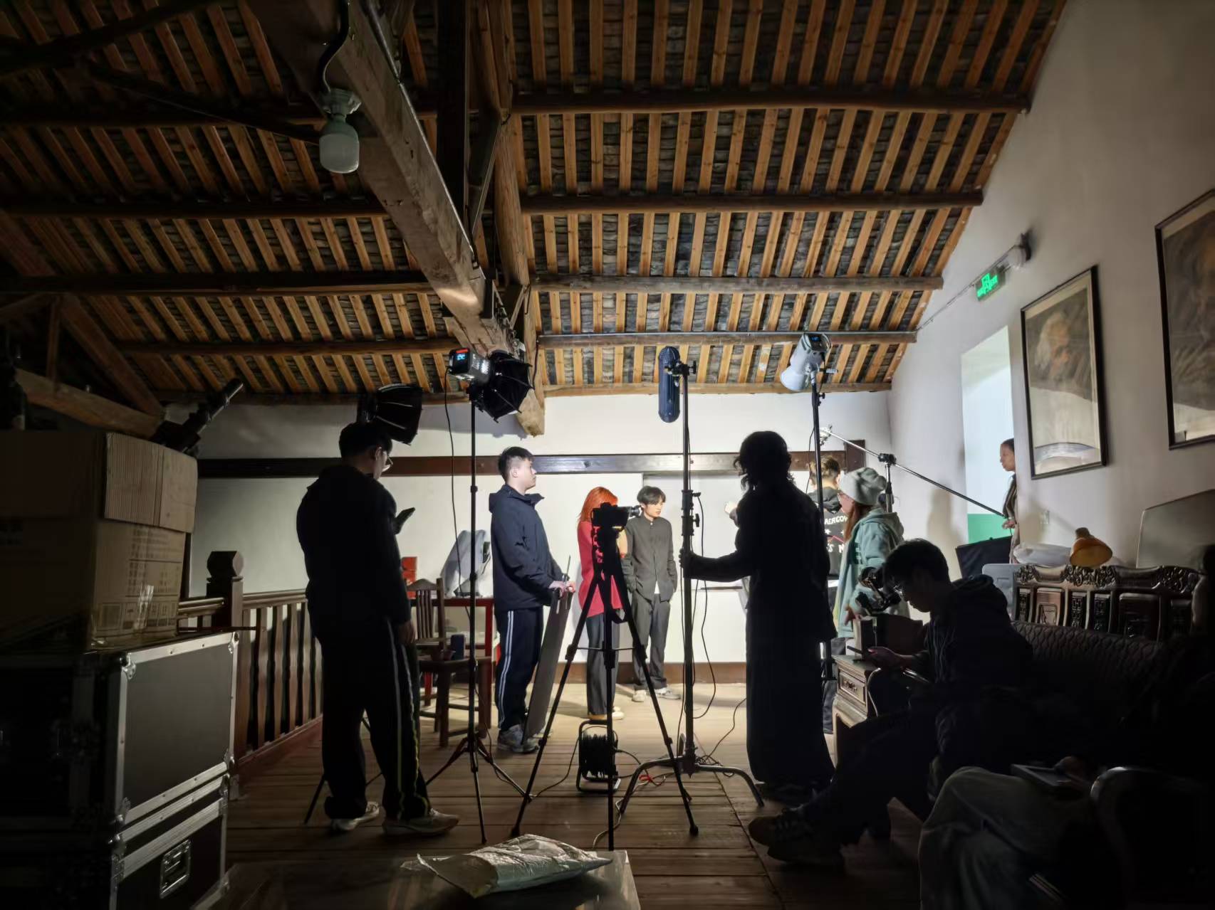“我一直想创作一部扎根乡土的片子,直到半年前跟随林筠老师来到华安二宜楼堪景,当地的文化氛围与自然风貌一下子击中了我。”导演邢蔓钰同学的话语里满是笃定,“能在这里实现创作心愿,感觉一切都是最好的安排。”编剧孙一鸣同学则分享了创作中的收获:“为了让故事更接地气,我和团队多次深入华安采风调研,把当地的民俗元素、生活场景融进剧情里。这次创作不仅打磨了剧本结构与叙事逻辑,更让我明白,影像里的文化底色,从来都藏在真实的土地上。”