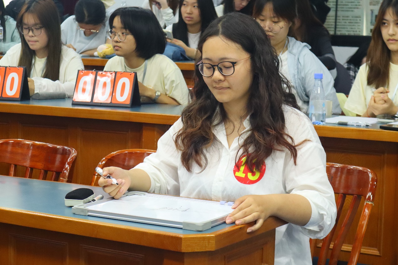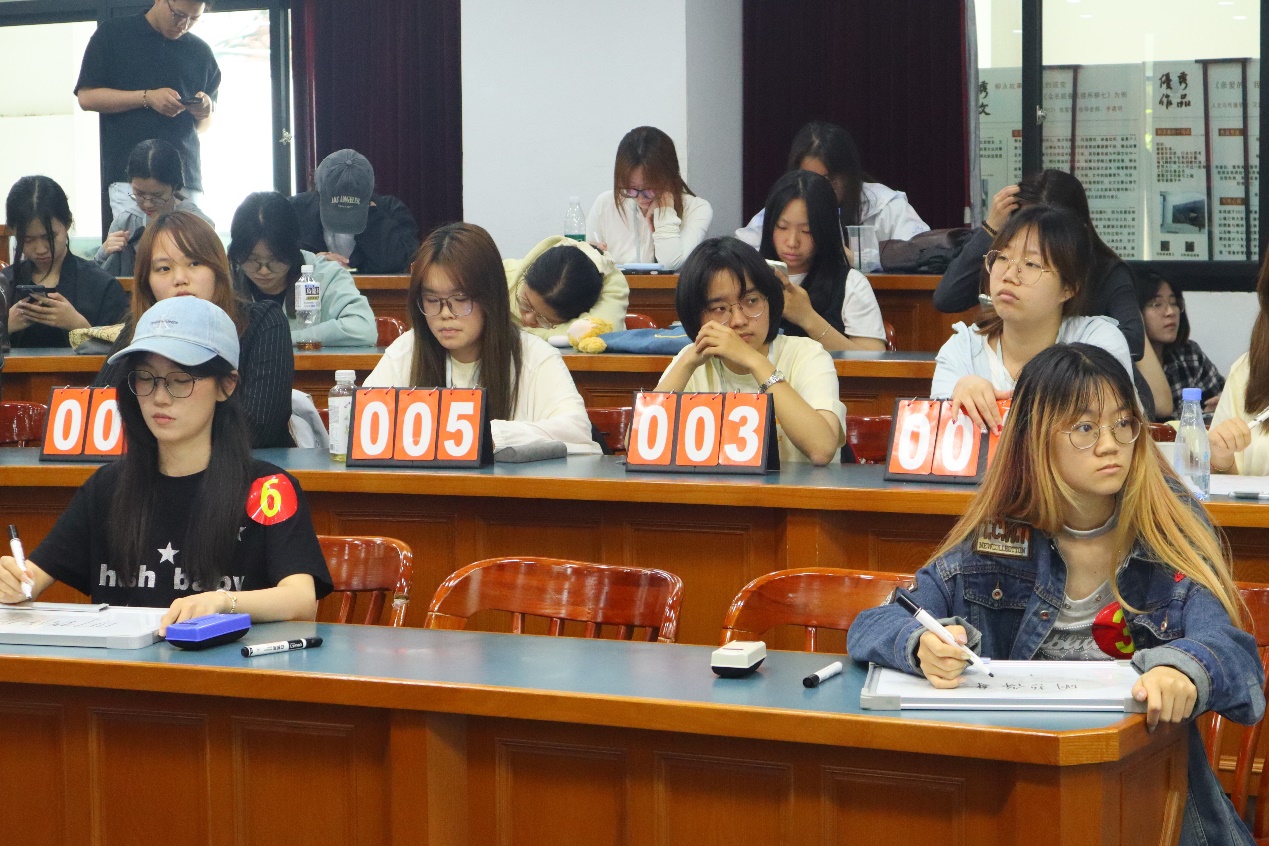 410日,第十五届汉字书写大赛听写场决赛暨颁奖典礼在公一#208案例教室举行。本次汉字书写大赛由厦门大学嘉庚学院语言文字工作委员会,厦门大学嘉庚学院学工部、团委主办,厦门大学嘉庚学院人文与传播学院及人文与传播学院宣传中心承办。嘉庚学院语委会秘书长、两岸用语中心常务副主任杜晶晶,嘉庚学院普通话测试中心主任卜祥忠,汉语言文学专业教师张翠真,担任本次大赛评委。人文与传播学院党总支书记易欣,人文与传播学院党总支副书记、学生工作负责人黄丽明,汉语言文学专业教师吴秉勋,新闻学专业教师黄晓丽,宣传中心指导老师唐慎言、牛慧珍,作为嘉宾出席现场。