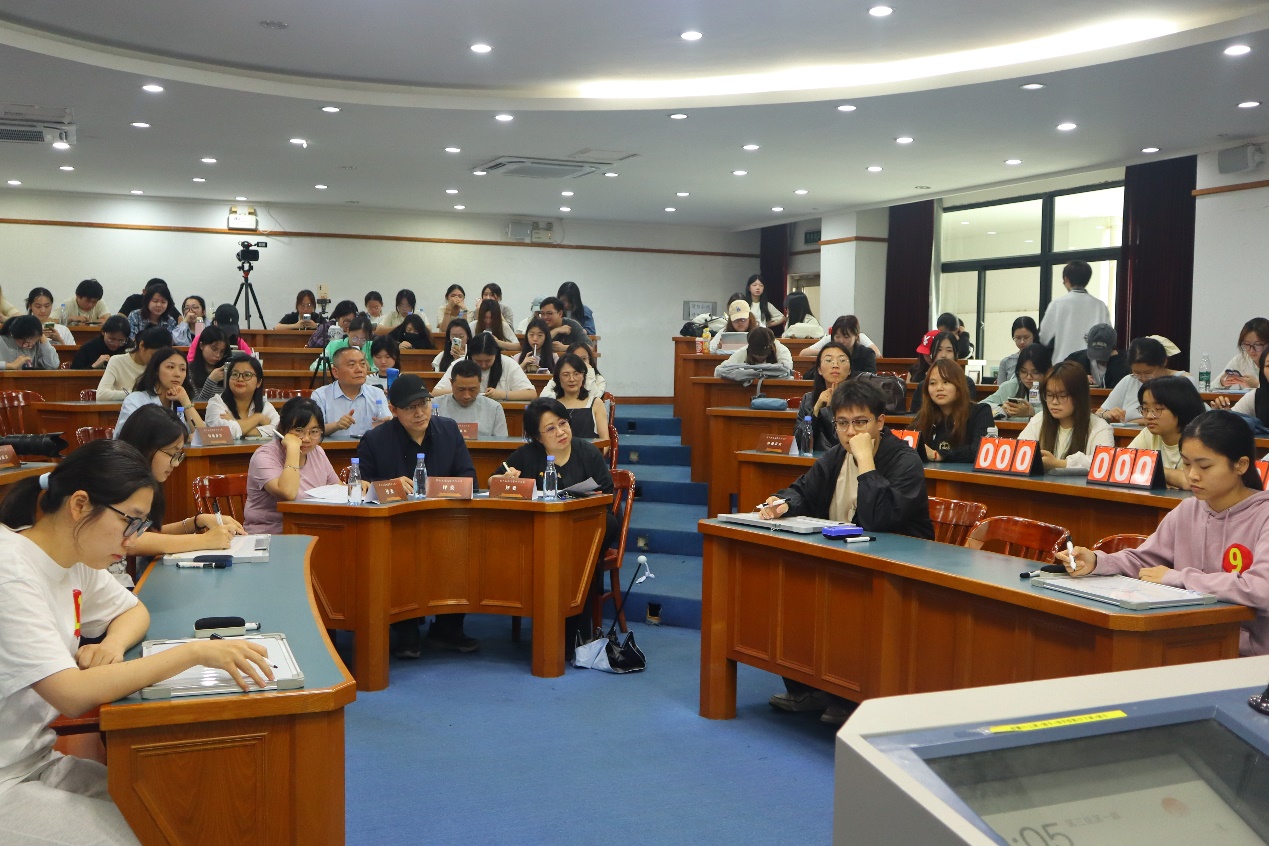 比赛结束,杜晶晶秘书长对此次大赛进行总结。她表示,汉字书写大赛至今已举办了15年,主办方和评委的持续参与,也见证了每届参赛学生长期的成长与进步。且本届题库难度较往届明显提升,生僻字及易读错字数量增多,考查范围从3000常用字、900高频字,延伸至7000通用规范汉字,涵盖简体、繁体、甲骨文以及受方言影响的读音汉字。此次比赛设置的题目有六成以上学生答对,甲骨文与繁体字共11个,仅2个全错,正确率超85%;词义辨析13题,无一题全员答错;成语题多为文化底层沉淀的生僻成语,冠军选手正确率与反应速度均表现优异。她对本次决赛选手的表现给予了充分肯定,并强调“文质彬彬”是中华文化中重要的修养理念,它强调外在形式与内在品格的和谐统一。正如一个人的言行举止是其修养的体现,我们对文化传统的认知与实践,也应当是形式与内容、文饰与质实的有机结合。