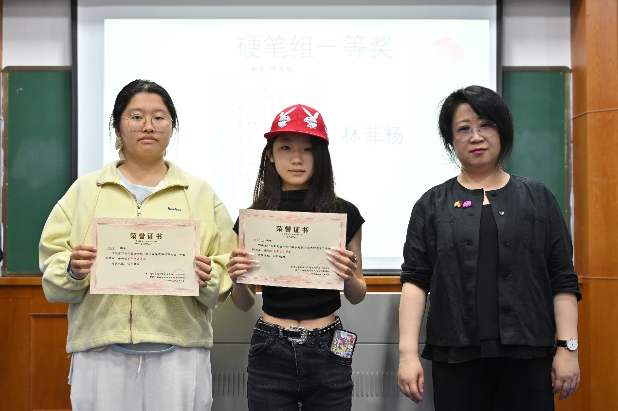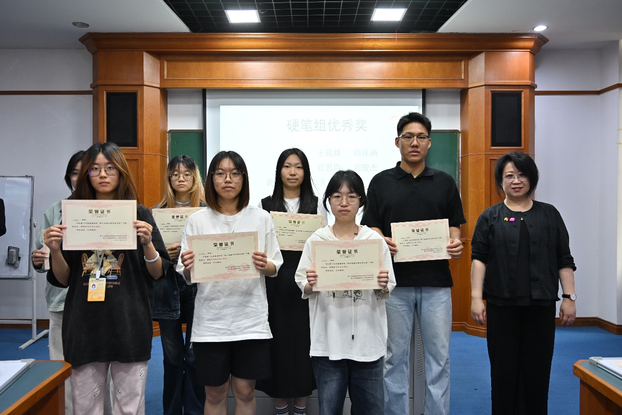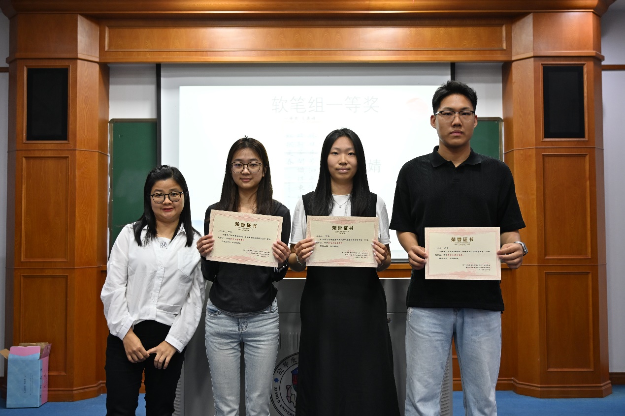 在最后的颁奖环节中,软笔组、硬笔组与听写组的获奖选手依次登台领奖,并与颁奖嘉宾合影留念。至此,本次汉字书写大赛也在热烈掌声中拉下了帷幕。