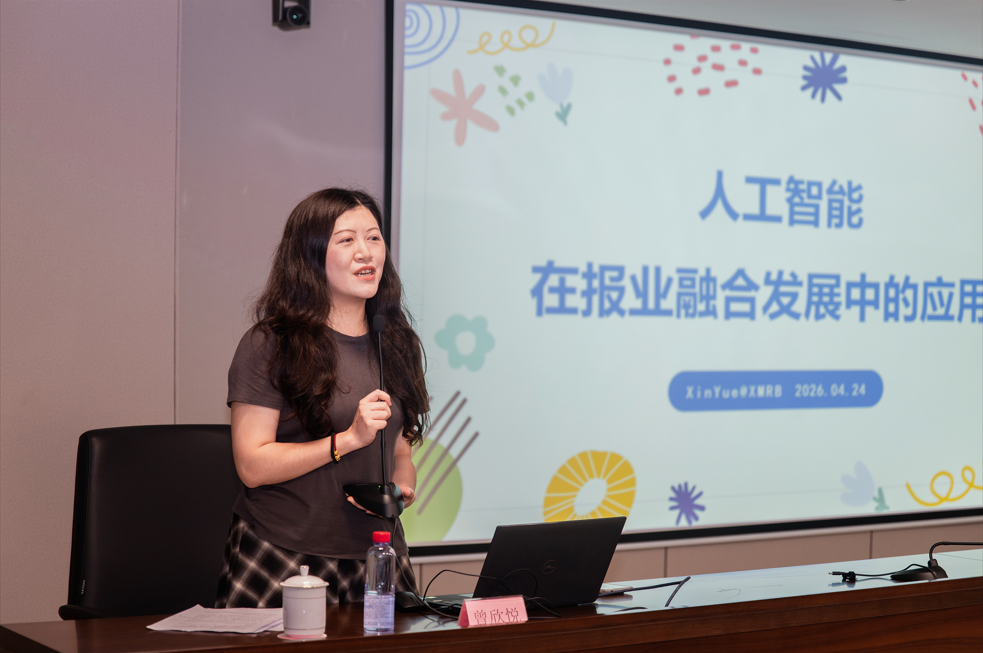 实地参观结束后,师生团队与报社资深编辑记者开展深度座谈。座谈会聚焦主流媒体的系统性变革探索、人工智能在报业融合发展中的应用两大核心议题,业内专家结合一线工作经验展开细致分享。报社编委黄毓斌认为,主流媒体要以技术赋能,通过体制创新和内容优化,推动媒体从传统信息传播向全媒体、平台型、智能化、服务化的方向转型。未来传媒人才必须懂人工智能、懂新媒体技术、懂新闻渠道的运营方式。新媒体中心二级首席编辑曾欣悦介绍了报社在内容生产、产品分发、使用消费和创新服务等方面的应用情况,现场展示了报社推出的多项AI产品,并分析了AI应用在信息真实性风险和版权归属等方面的挑战与问题。她鼓励同学们在掌握新闻传播基本功的同时,不断提升创新能力和对AI的训练能力,在实践中尝试、挖掘新技术、新玩法,让AI成为助力提升新闻传播力好帮手。